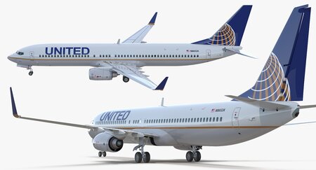 Boeing 737-900 ER United Airlines is ready to be animated. You can easily position it the way you need or animate.