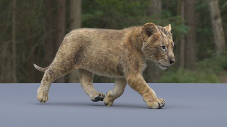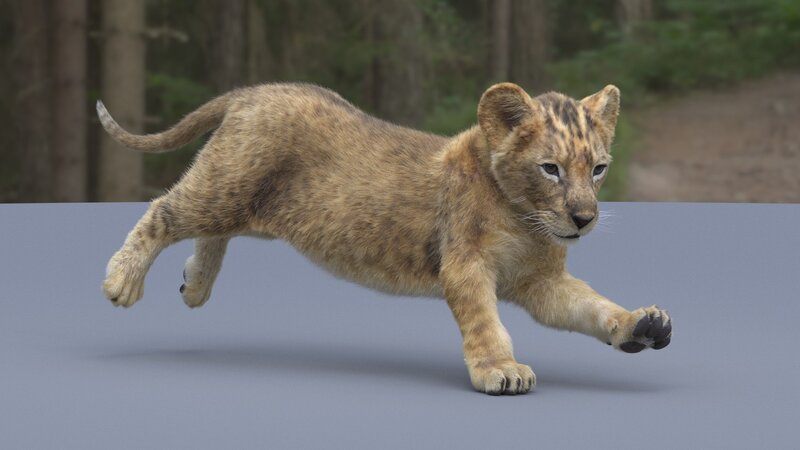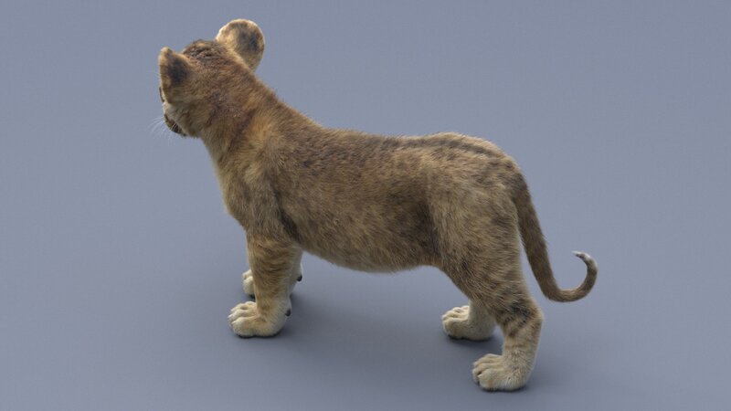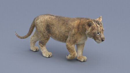 High-quality realistic and rigged Lion cub model with fur, it has Arnold materials with high-resolution textures. The Lion cub model has a clean topology and is good in one iteration of smoothing. The model has a custom rig and is ready for animation.