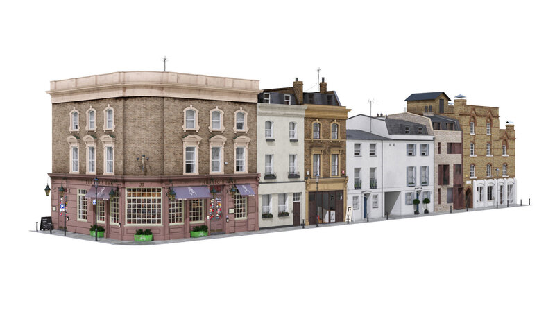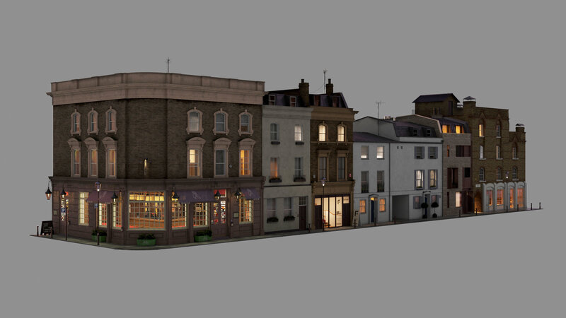 Detailed model of part of an old Church street in London for your atmospherical renders. Suitable for far , close-up and night renders