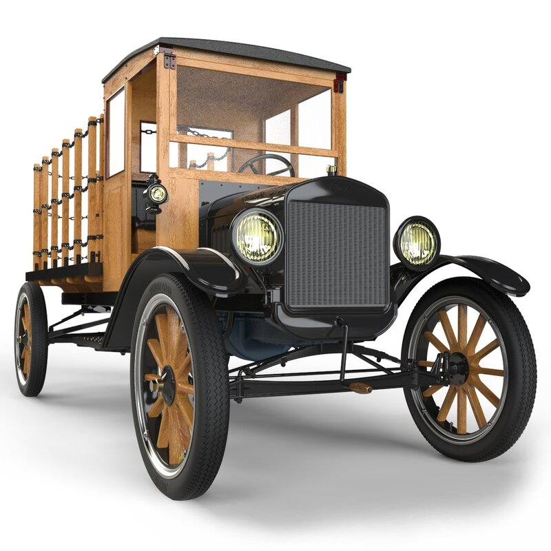 This high resolution 3,263,314 poly CAD model was created in SolidWorks™ from research, field measurements and photographs. It is full-size (1:1) and accurately scaled, with most parts individually modeled. The modeling quality allows for extreme close-ups and rendering. It is ideally suited for hero and foreground shots within early 20th Century period sets and CG’s. There is no motor, only the “basic block” and oil pan that shows under the chassis.