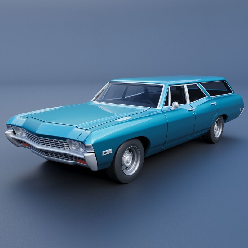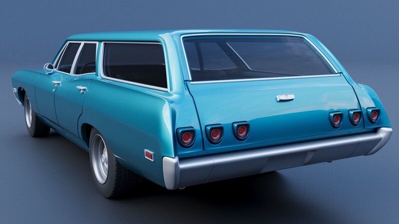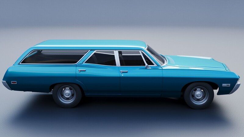 The model includes •Body •Body without hood •Hood •Body divided into 3 parts •Grille •Engine •Interior •Chassis •Wheels •Tires •Windows and glass for headlights and taillights