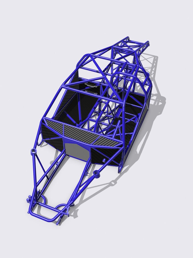 Designed from scratch is a tubular Pro Mod chassis, with funny car cage & accessory mounting locations, with floors and firewall panels, high in detail, ideal for scale modeling (currently in 1/24 and 1/25 scale).