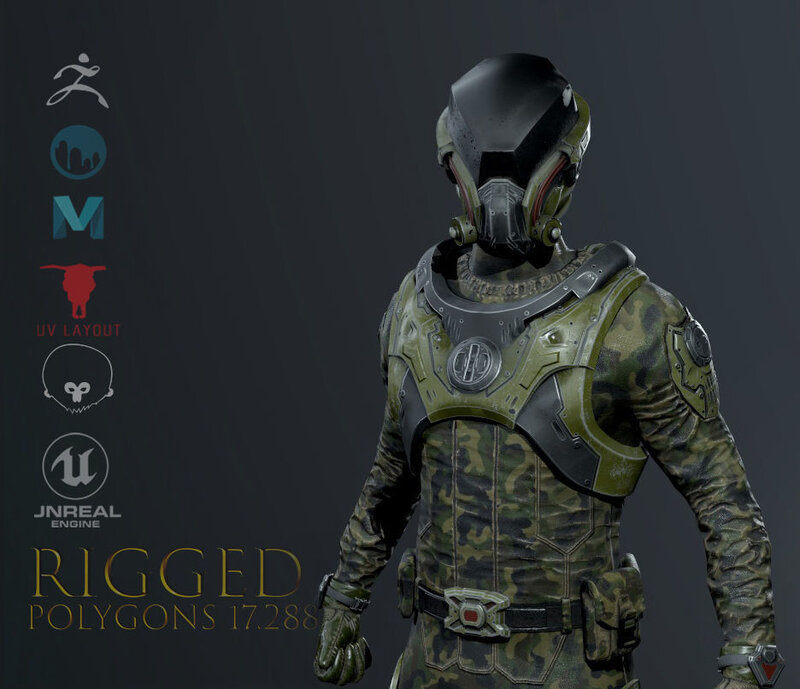 -SCI-FI soldier .Game ready low-poly model,RIGGED: RPG, strategy, first-person shooter, etc.