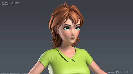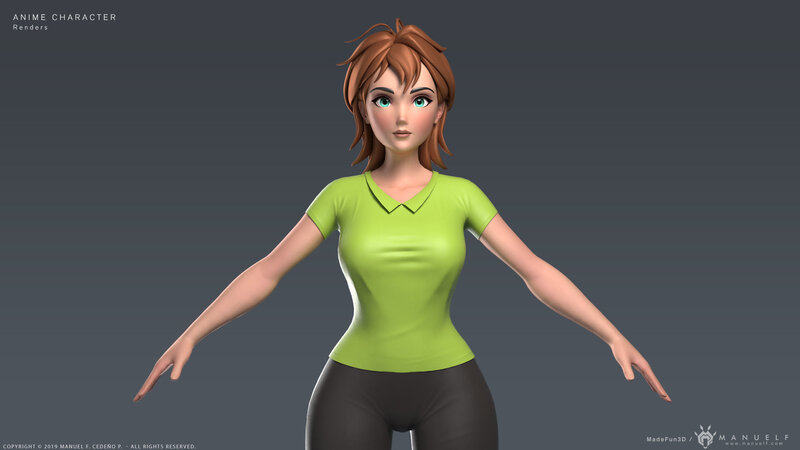 High quality model of a stylized young woman, in anime or cartoon style.
