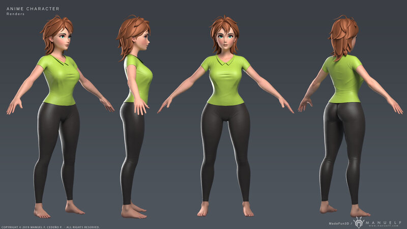 Anime Cartoon Girl Young woman Character Low-poly 3D model