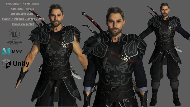 AAA 3D OLD BEARDED MALE KNIGHT -REALISTIC RIG GAME CHARACTER Low-poly 3D model