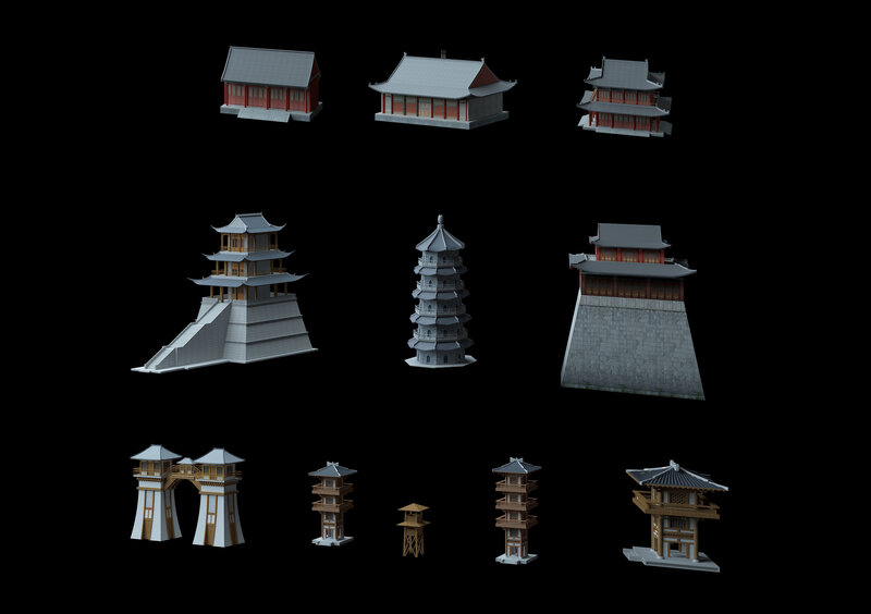 These models of ancient buildings are elaborately made. They can use: precise wireframe, true scale.