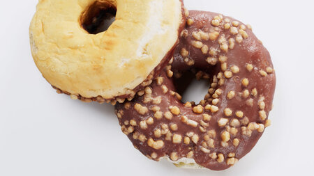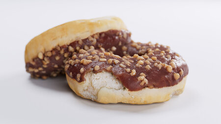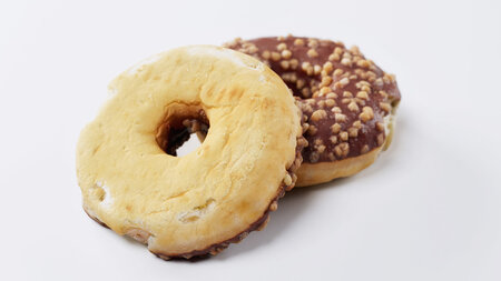 High quality scan of a chocolate flavoured donut using cross polarised light.