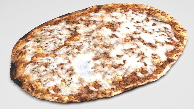 Description This model is built to real-world scale and centered to origin. This Turkish Lahmacun With Cheese is a high quality, real model. High quality polygonal model, correctly scaled for an accurate representation of the original object.