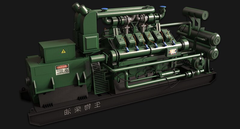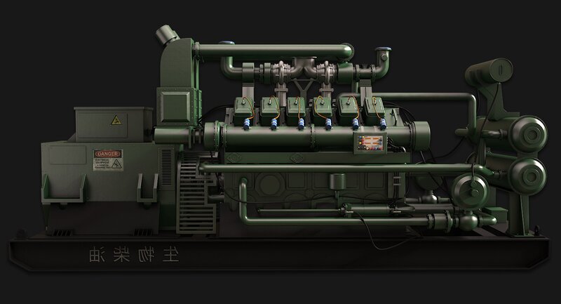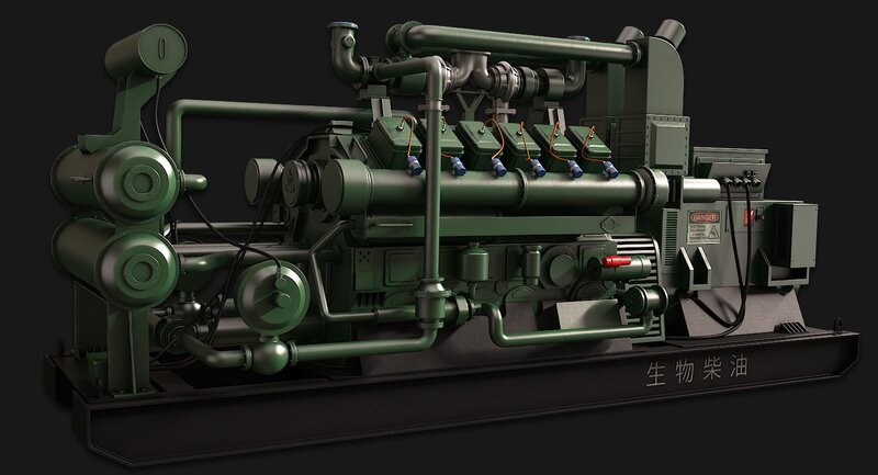 This is an extremely detailed model of a large bio-diesel generator featuring clean paint textures. The model consists of over 2,300 separate elements and is model to make mechanical sense. All elements have been cleanly poly modeled with no intersecting geometry and proper supporting edges. To make object/scene management easier, the objects have been attached into 29 sections which makes the file much easier to work with. (see assembly images and map previews.)