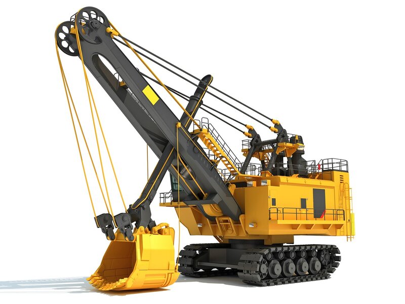 Detailed and textured 3d model of electric rope shovel.