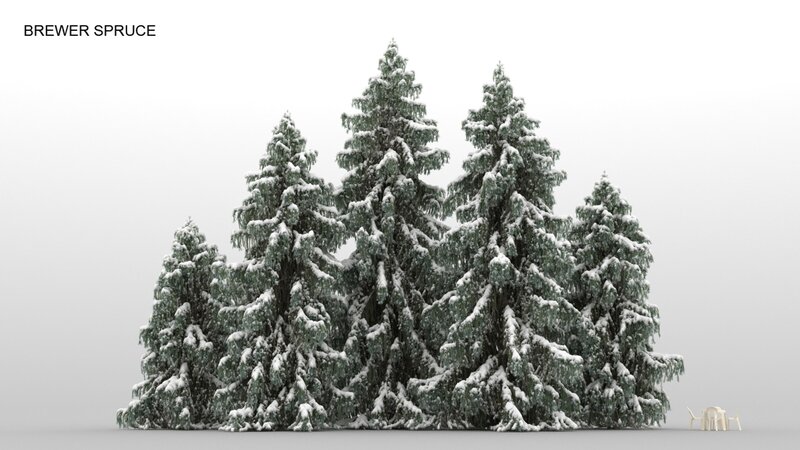 package contains 16 type of pine trees and every type has 5 sizes and variations. also every tree has snowy version. 80 summer and 80 winter pine tree models in total. winter trees are exactly the same summer trees with snow.