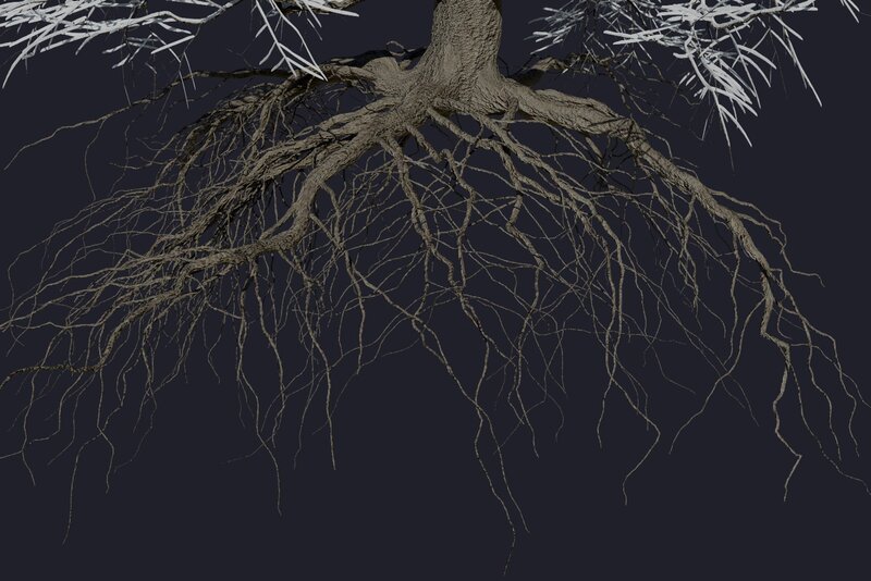 Oak Tree model consist of 4 mesh parts: