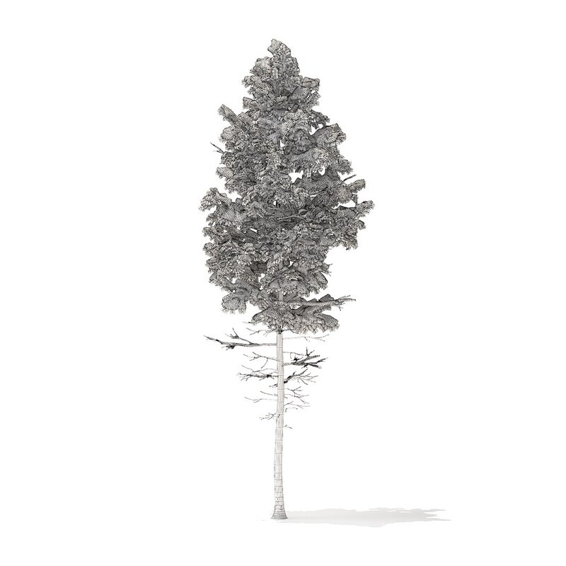 Pine tree with snow 3d model. Height: 7.7m. Compatible with 3ds max 2010 (V-Ray, Mental Ray, Corona) or higher, Cinema 4D R15 (V-Ray, Advanced Renderer), FBX, OBJ and VRMESH.