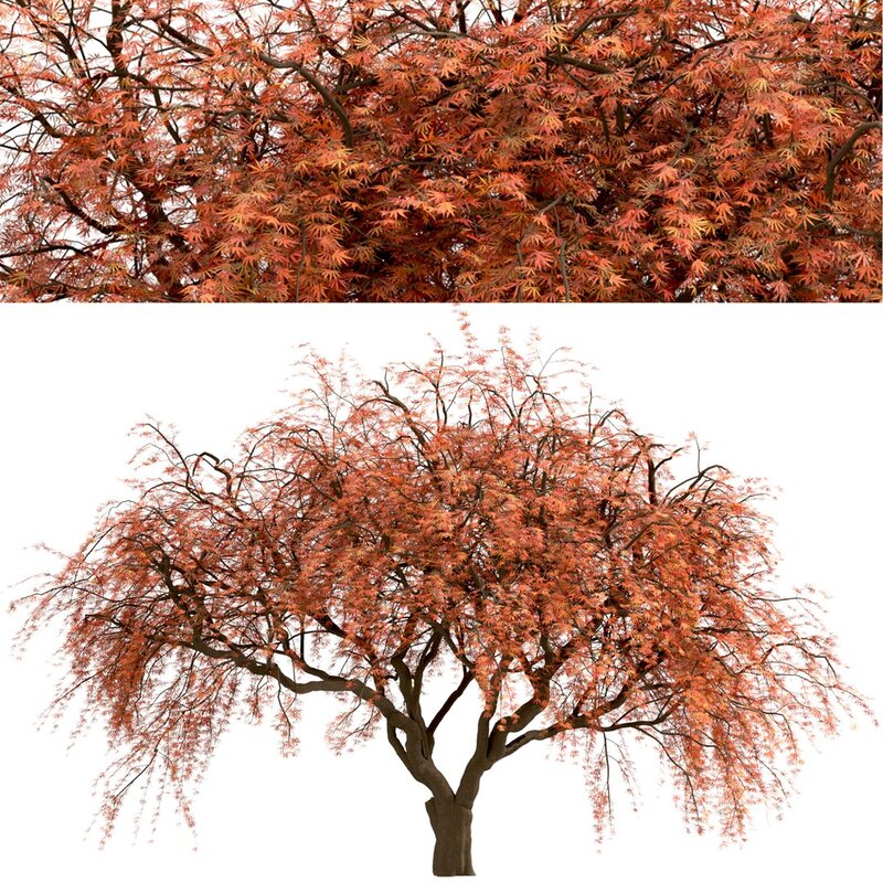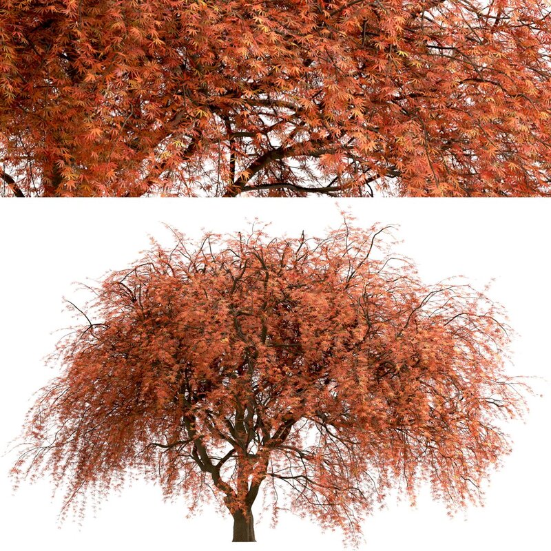 2 different Weeping Japanese Maple trees in the scene.