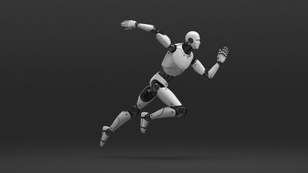 Advanced Male Humanoid Robot Running Pose is a 3D model of humanoid male cyborg, which is designed and manufactured to resemble a human male in appearance and movements.