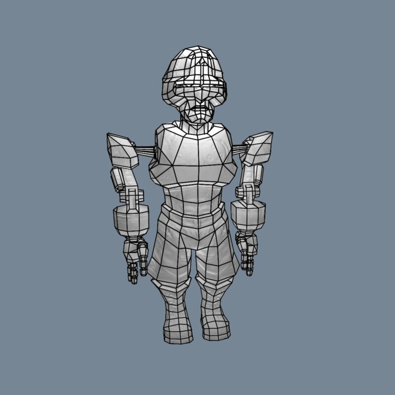 The Poly count for this model is 4366 tris including laser rifle. The character mesh and laser rifle are separate to allow the use of different weapon types.