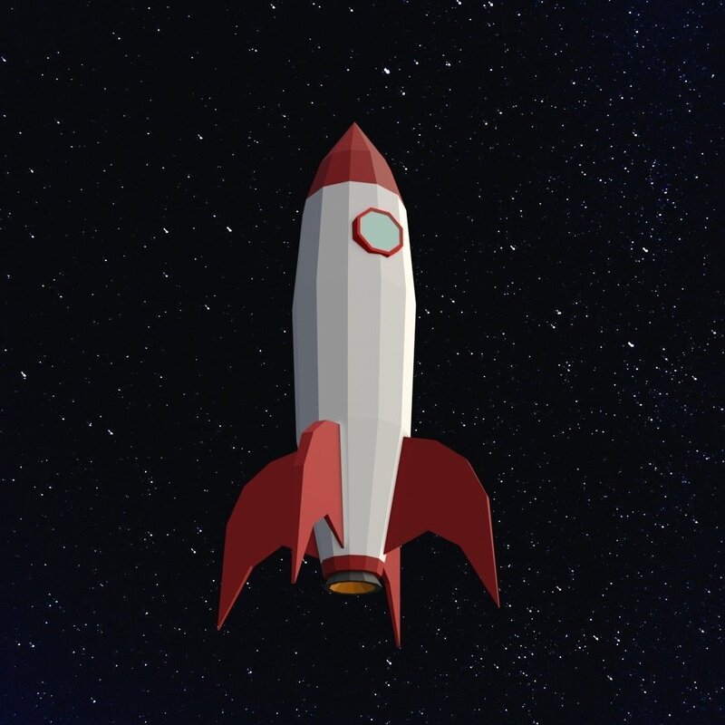 A space rocket model in low-poly polygons style.